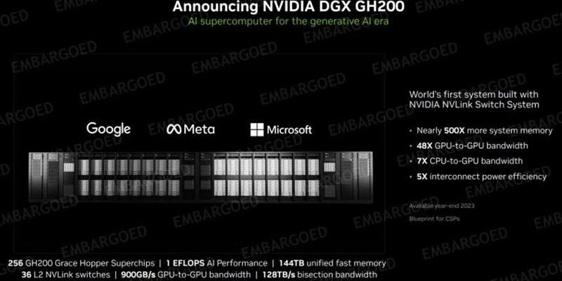 3、NVIDIA宣布推出DGX GH200人工智能超级电脑