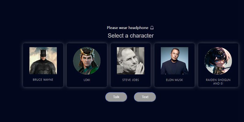 👇使用该应用需要插入耳机,之后就可以选择对话人物,通过语音或文字聊天,此应用是基于ChatGPT,虽然支持中文对话,但每次中文对话网站都会提示有错误,可能是应用Bug