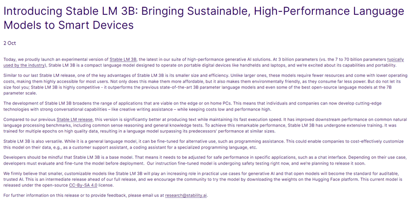8、Stability AI 推出 Stable LM 3B 语言模型,号称“可为移动平台设备带来高性能体验”