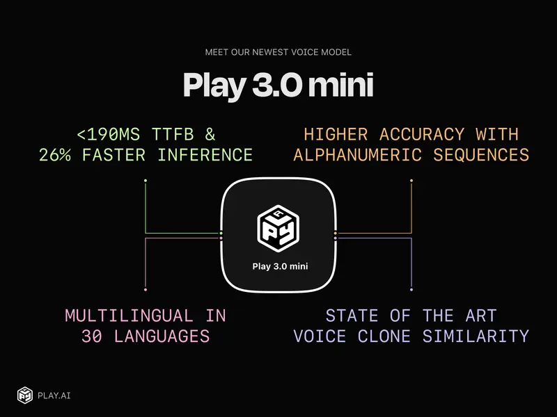 Play AI 最近推出了一款新的文本到语音(TTS)模型——Play 3.0 mini。这款模型不仅更快、更准确,还支持多种语言,具备流式传输功能,并且成本效益更高。Play 3.0 mini 的推出标志着 Play AI 在推进对话式 AI 技术和提升用户体验方面的又一重要里程碑。