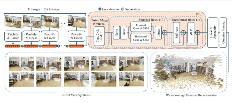 俄勒冈州立大学和Adob​​e 研究中心的研究人员推出新型三维高斯重建模型Long-LRM,它能够快速从一系列输入图像中重建出一个大型场景的三维表示。例如,你是一位电影制作人,需要在一个复杂的城市环境中快速构建一个三维模型以用于特效制作。使用Long-LRM,你只需拍摄一系列该场景的照片,上传到计算机,模型就能迅速生成一个详细的三维城市环境,你可以从任何角度查看和修改这个环境,极大地提高了制作效率。