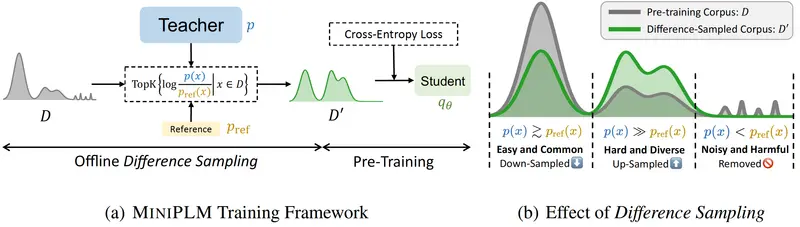 MINIPLM的工作原理基于“差异采样”(Difference Sampling),具体步骤如下: