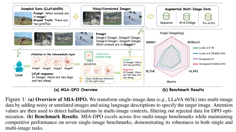 它旨在提升大型视觉语言模型(LVLMs)在处理多图像任务时的表现。在现实世界中,我们经常需要理解和比较多个图像,比如在网页上浏览商品图片或者在报告中分析多个图表。MIA-DPO通过优化这些模型,使它们能够更准确地处理和理解多图像输入,减少“幻觉”(hallucinations)现象,即模型错误地识别或生成不存在于图像中的信息。