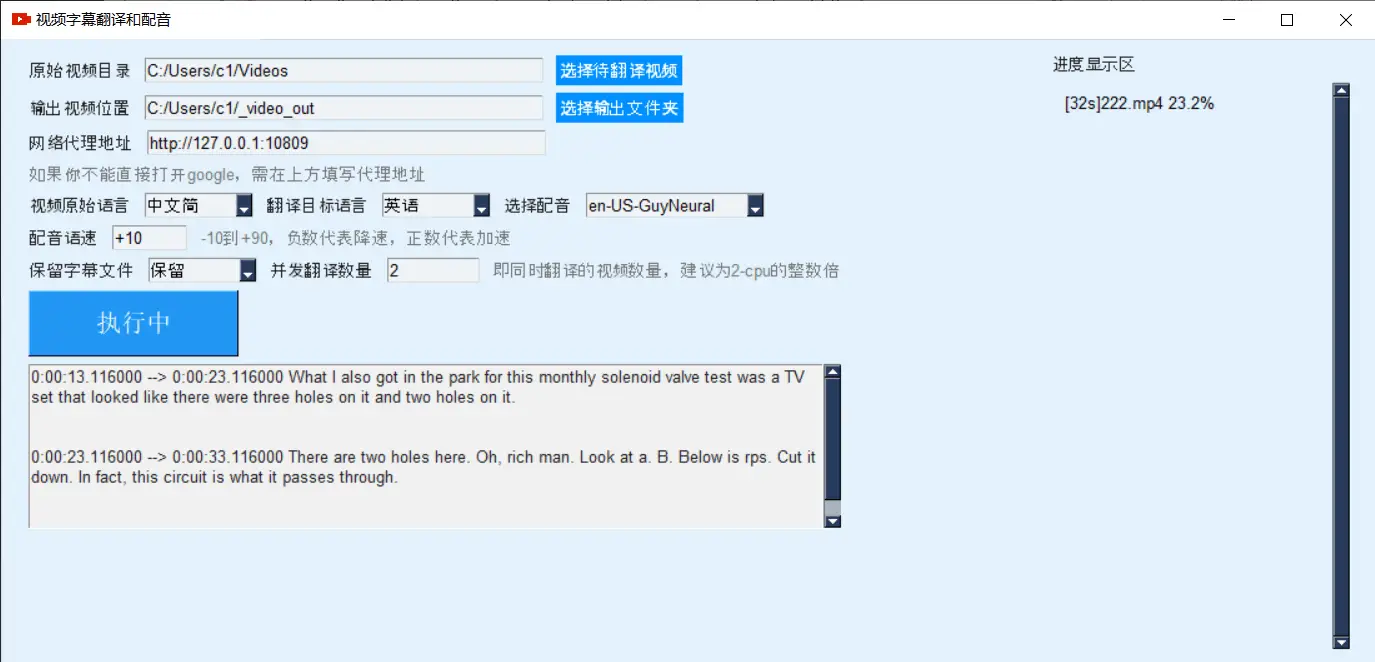 pyvideotran 是一个开源视频翻译工具,可将一种语言的视频翻译为另一种语言和配音的视频。语音识别和文字翻译使用 google 接口,文字合成语音使用 Microsoft Edge tts,无需购买任何商业接口,也无需付费。