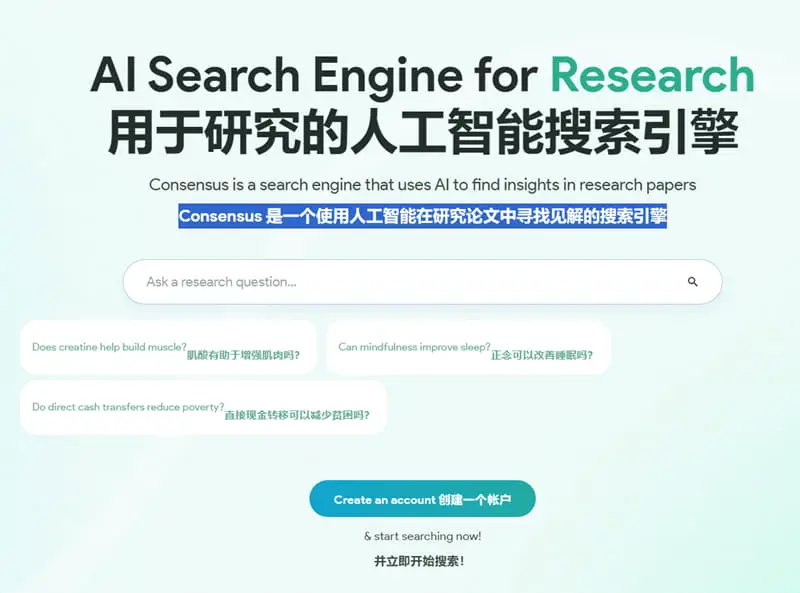 Consensus 是一个基于 AI 的论文搜索引擎,透过 AI 的辅助,它可以让我们: