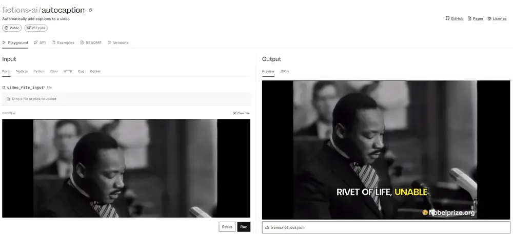 GitHub 地址:https://github.com/fictions-ai/autocaptionDemo 地址:https://replicate.com/fictions-ai/autocaption