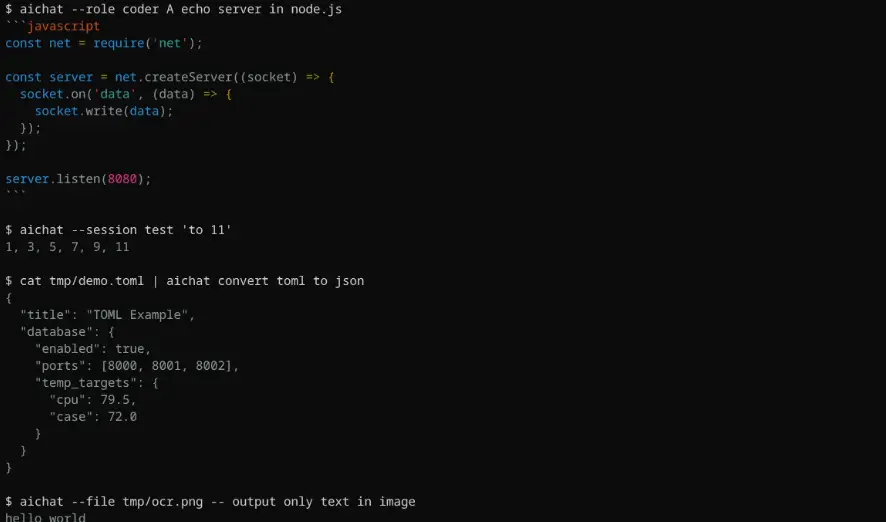 AIChat 是一款可以在终端中使用 GPT-4(V)、Gemini、LocalAI、Ollama 等大语言模型的开源应用。