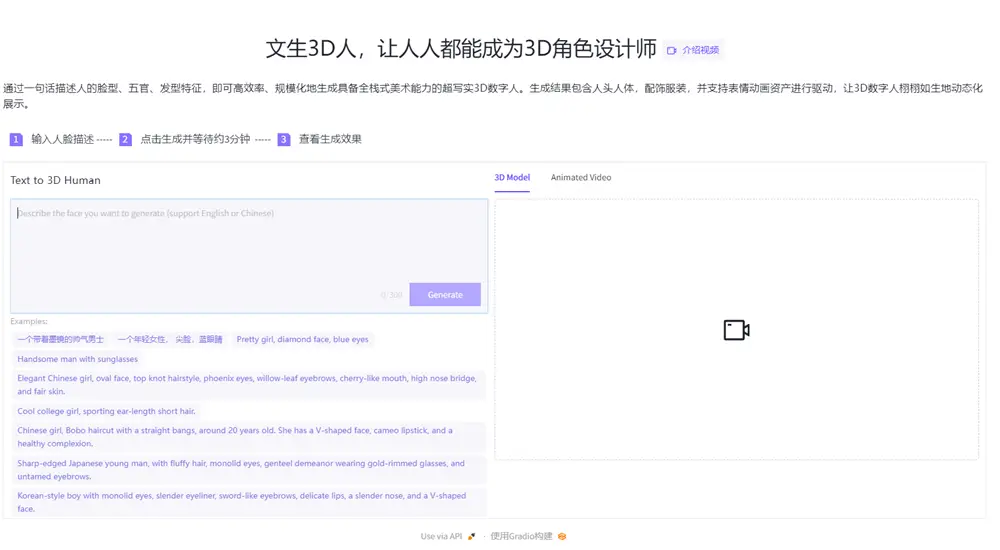 阿里巴巴智能计算研究院近期推出了一个通过文字生成 3D 头像的项目 Make-A-Character(文生 3D 人),可以在 2 分钟内打造可控、逼真的 3D 角色,同时还能轻松与现有的 CG 流程集成。通过一句话描述人的脸型、五官、发型特征,即可高效率、规模化地生成具备全栈式美术能力的超写实 3D 数字人。生成结果包含人头人体,配饰服装,并支持表情动画资产进行驱动,让 3D 数字人栩栩如生地动态化展示。