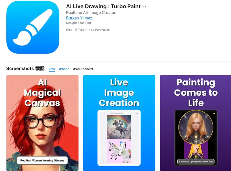 地址:https://apps.apple.com/us/app/ai-live-drawing-turbo-paint/id6473124540
