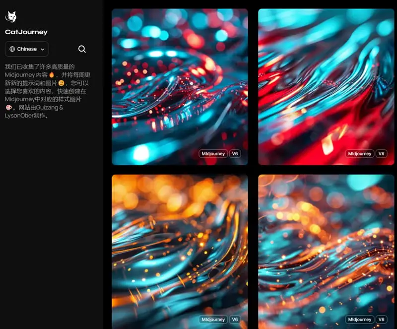Catjourney 是一个主要收集整理 Midjourney 提示词的网站,大家可以根据需求寻找喜欢的图片,然后参考提示词,目前网站有搜索功能。