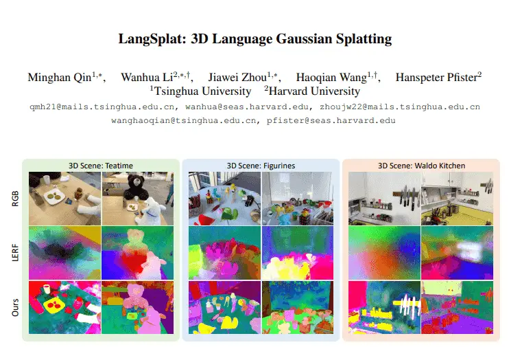 清华大学携手哈佛大学,共同开发了名为 LangSplat 的全新 AI 系统,能够在三维空间内高效、准确地搜索开放式词汇。LangSplat 是第一个基于 3DGS 的 3D 语言场方法,特别引入了 SAM 和 CLIP,在开放词汇 3D 对象定位和语义分割任务上优于最先进的方法,同时比 LERF 快 199 倍。( 来源 )