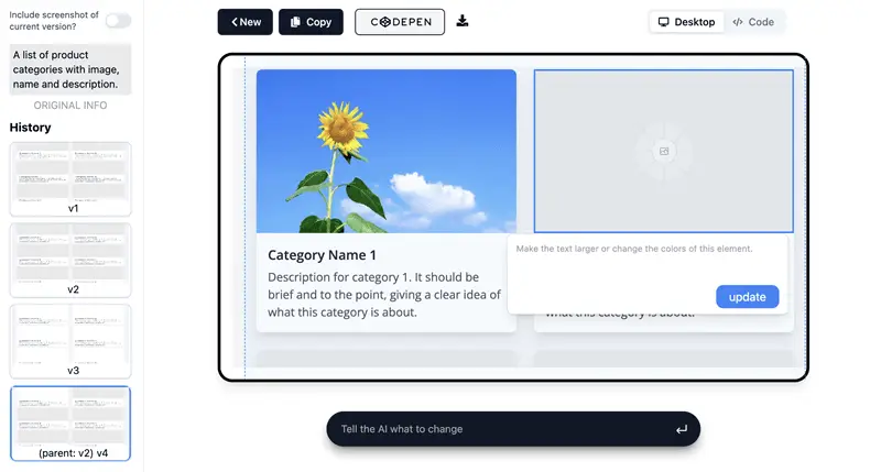 - 支持局部编辑:(HTML + Tailwind,react + Tailwind)